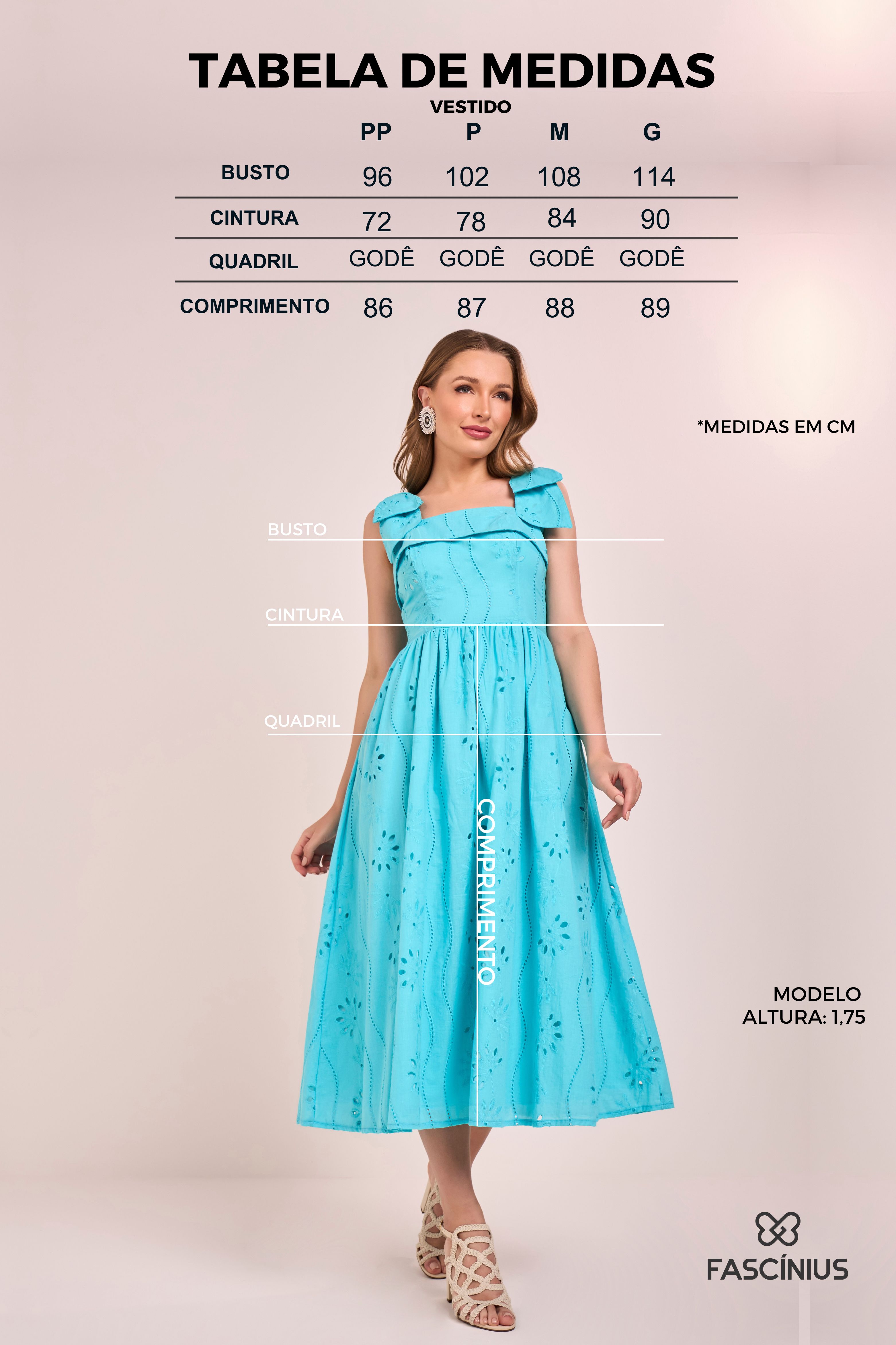 Este vestido midi em laise é a escolha perfeita para quem busca charme e frescor. Com alças delicadas e laços aplicados, ele exala feminilidade e romantismo. A saia franzida garante leveza e movimento, tornando-o ideal para looks elegantes e confortáveis.