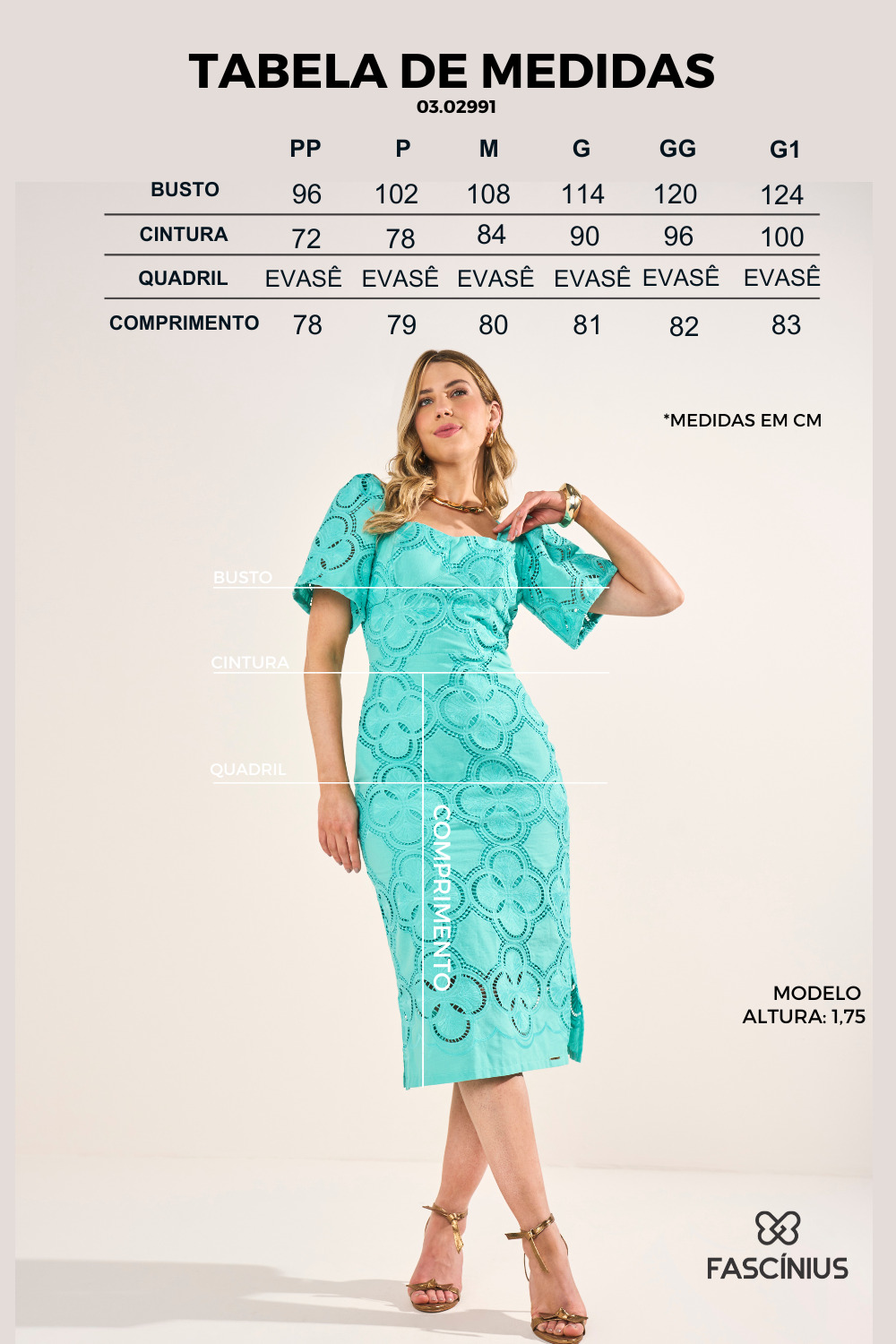 Vestido Bordado Richelieu Decote Princesa Justo Midi Vivace Fascinius