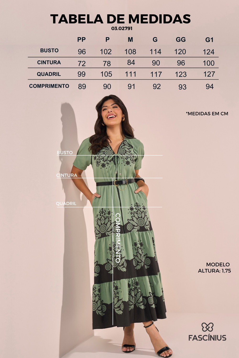 Vestido Estampa Floral Manga Curta Midi Suspiros de Elegância Fascinius